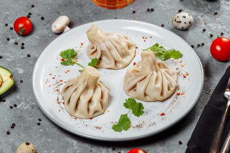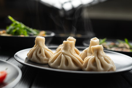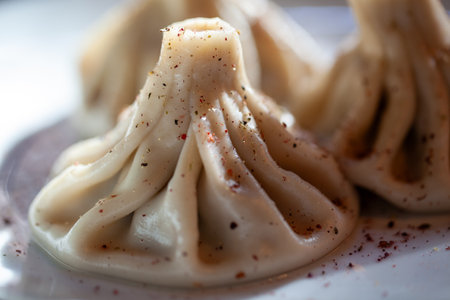 Khinkali - traditional Georgian dumpling cuisine - selective focus food photo