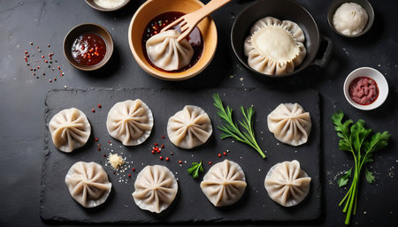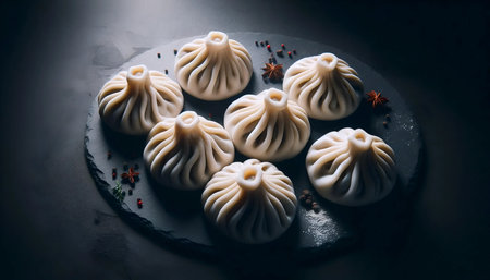 Khinkali on dark slate, AI generated image