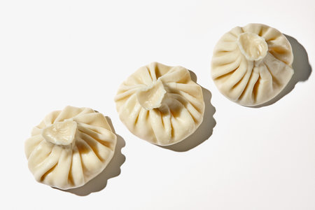 Cooked khinkali traditional georgian dish isolated on white background. Georgian traditional cuisine.