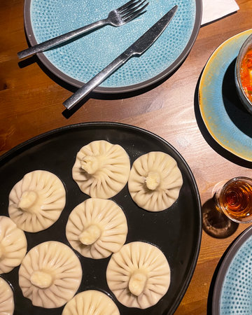 Traditional georgian khinkali in one of Tbilisi restaurants