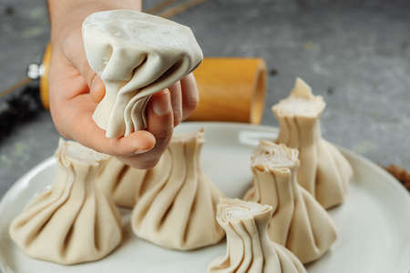 Georgian and Caucasian traditional dumplings; khinkali food