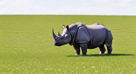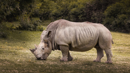 Rhino grazing on grass outdoors in nature