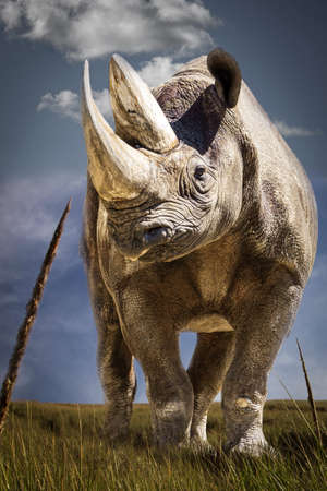 Illustration of photo of a rhinoceros on a black background for a banner, shot