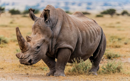 A captivating close-up portrait of a majestic rhinoceros