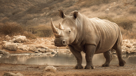 White rhinoceros at a waterhole in Kruger National Park, South Africa