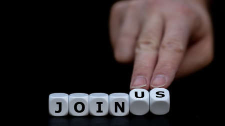Dice form the expression join us.
