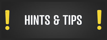 Hints & Tips. A blackboard with white text. Illustration with grunge text style.