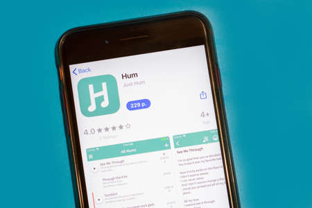 New York City, USA - 5 February 2020: Hum app icon on phone screen, Illustrative Editorial.