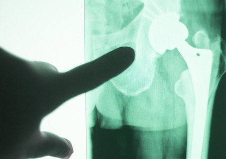 Hip joint replacement impant x-ray test scan results of old aged person with arthritis and joints pain.