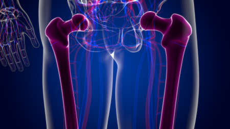 Human skeleton anatomy Femur Bone 3D Rendering For Medical Concept