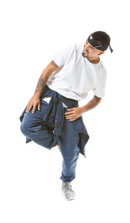 Male hip-hop dancer on white background