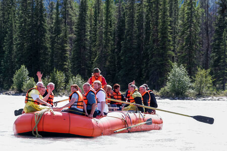 JASPER, ALBERTA/CANADA - AUGUST 9 : Whitewater rafting on the Athabasca river flowing down to Jasper on August 9, 2007. Unidentified people.