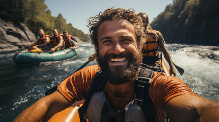 Experience the exhilarating rush of white water rafting as a group of friends navigates turbulent rapids, showcasing a dynamic and adventurous outdoor activity.