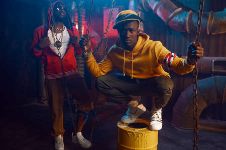 Modern rapper dancing in garage. Urban lifestyle, hip hop.