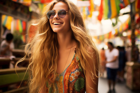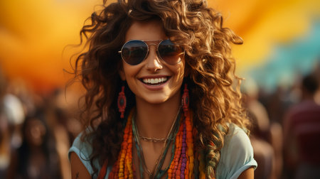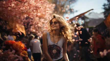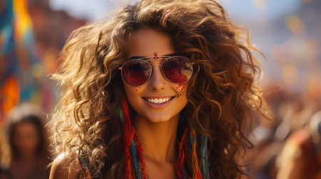 Casual portrait of young Latin woman in summer festival. Generative AI