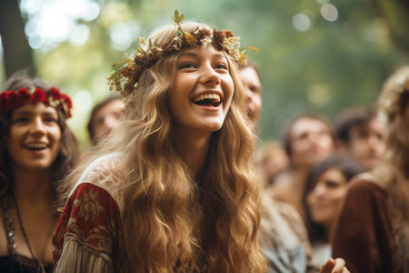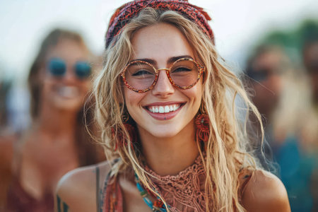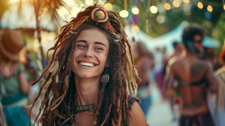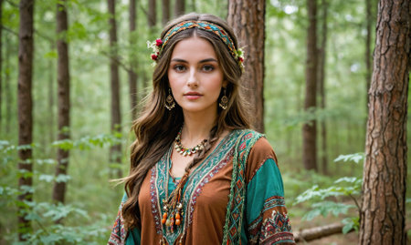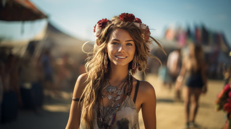 Generative AI Portrait of a young girl, festival boho style