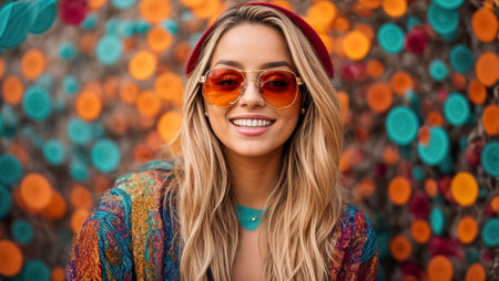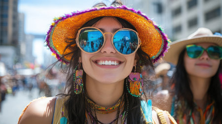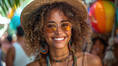 Vibrant Woman in Hat and Sunglasses Radiating Joy