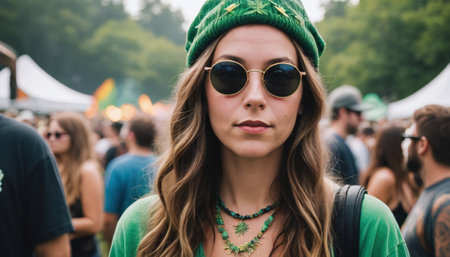 Woman At A Cannabis-Themed Festival. Generative AI