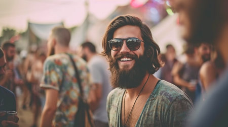 Blurred Hipster People at a Festival Event Party with Generative AI