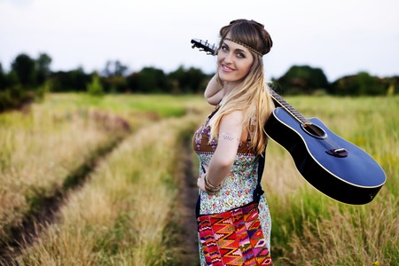 a Beautiful hippie girl with a guitar