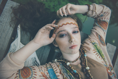 amazing, young and beautiful boho girl portrait