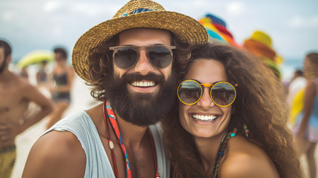 Portrait of a young hippie couple having fun on the beach