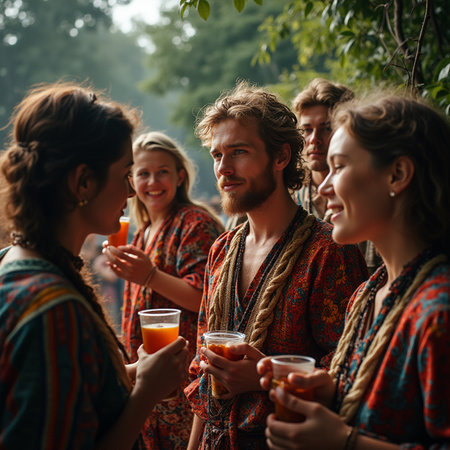 Hippie Group Dancing in the Countryside,Italy
