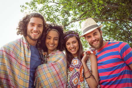 Happy hipsters smiling at camera at a music festival