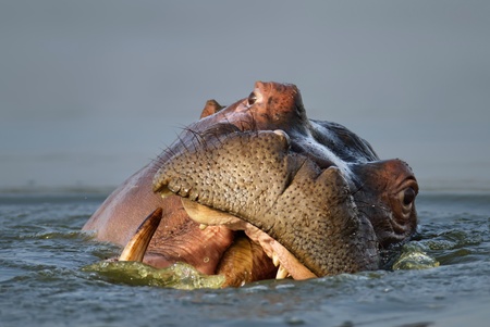 Hippo with open mouth and big teeth