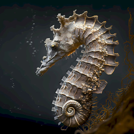 Hippocampus guttulatus, a Mediterranean seahorse, has a distinctive profile. Generative AI