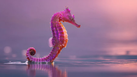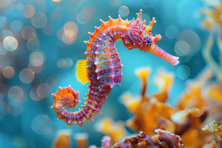 A stunning image of a colorful seahorse swimming in calm waters, showcasing its delicate features and vibrant colors against a soft, dreamy background.