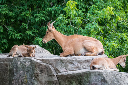 Serows,Chamois sitting peacefully on the ground.