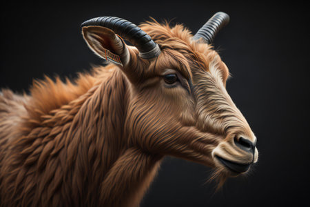 Portrait of a goat with horns on a black background. Studio shot. generative ai