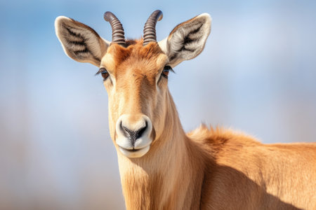 A captivating closeup shot of a majestic antelope, expertly showing its stunning and unique features beautifully