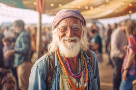 Portrait of a senior man with beard and mustache at the fair