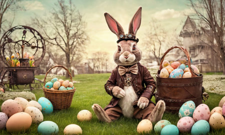 Step into a whimsical world where Easter meets steampunk, with a unique portrayal of a steampunk Easter bunny, blending tradition with innovation in a delightful fusion.