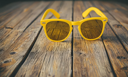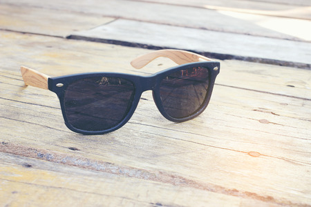 Sunglasses on wooden background - vintage effect style pictures. Yellow sunglasses