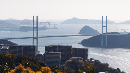 Shimanami kaido cycling route, Japan. Tatara Bridge. High quality photo