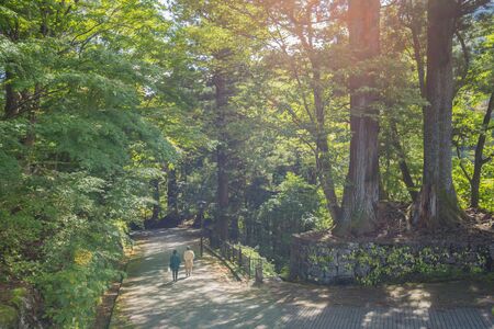 Pine tree forest in Nikko, Japan. Natural landscape background