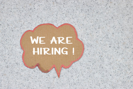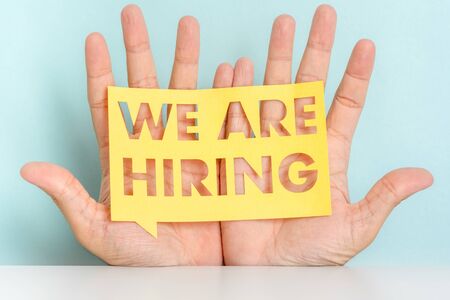 Text - We are hiring, written on paper. Employee vacancy announcement. Business recruiting, Hiring Business concept