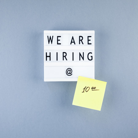 We are hiring. sign on light box. job hiring concept