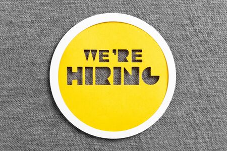 We are hiring - job recruting concept. Words We are hiring on paper banner