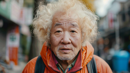 Old Chinese Man with Blond Curly Hair 1990s style Illustration.