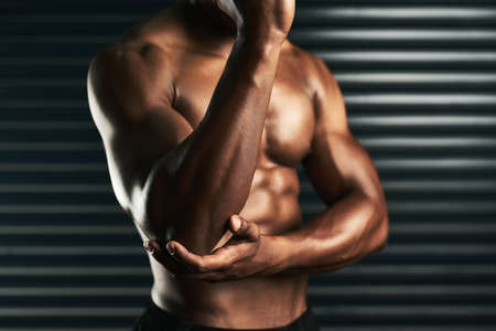 Strengthen the muscles around your joints. Studio shot of an unrecognizable man examining an elbow injury during his workout.