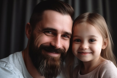 portrait of a happy father and his little daughter bonding together at home, created with generative ai