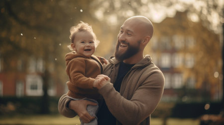 Happy father and his baby son sharing laughter and enjoying a joyful moment, celebrating their loving bond and family connection