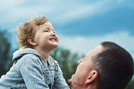 Caucasian family - a dad and daughter smiling
