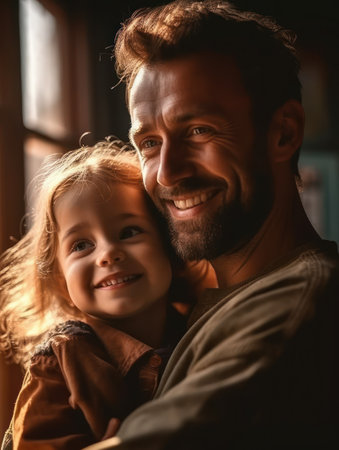 happy loving father hugging his little daughter. AI generated