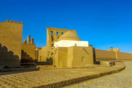 HISOR, TAJIKISTAN - JULY 31, 2022: Ancient Hisor Fort in summer against the blue sky.