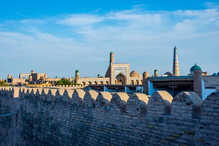 City walls of the ancient city of Ichan Kala in Khiva, Uzbekistan
